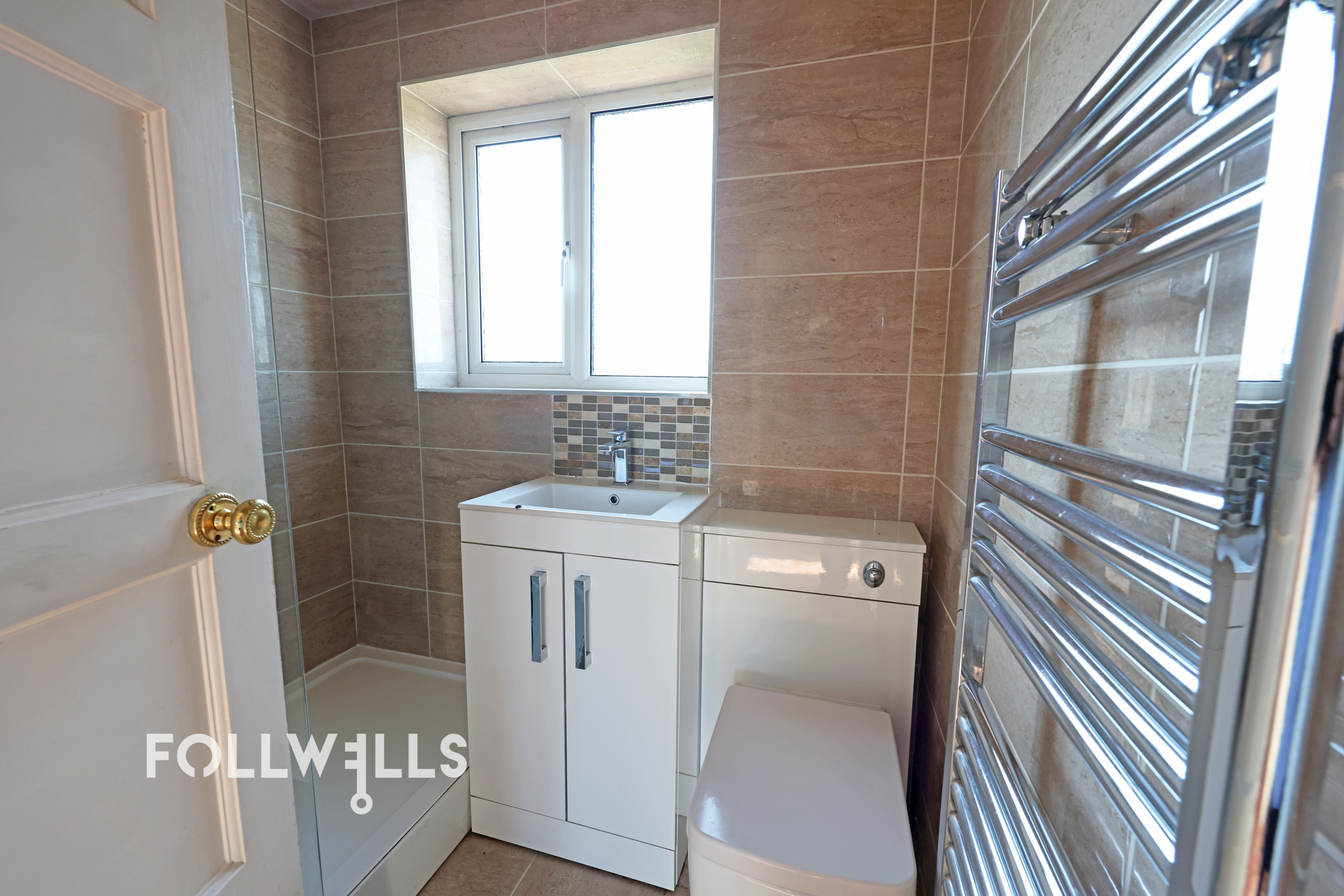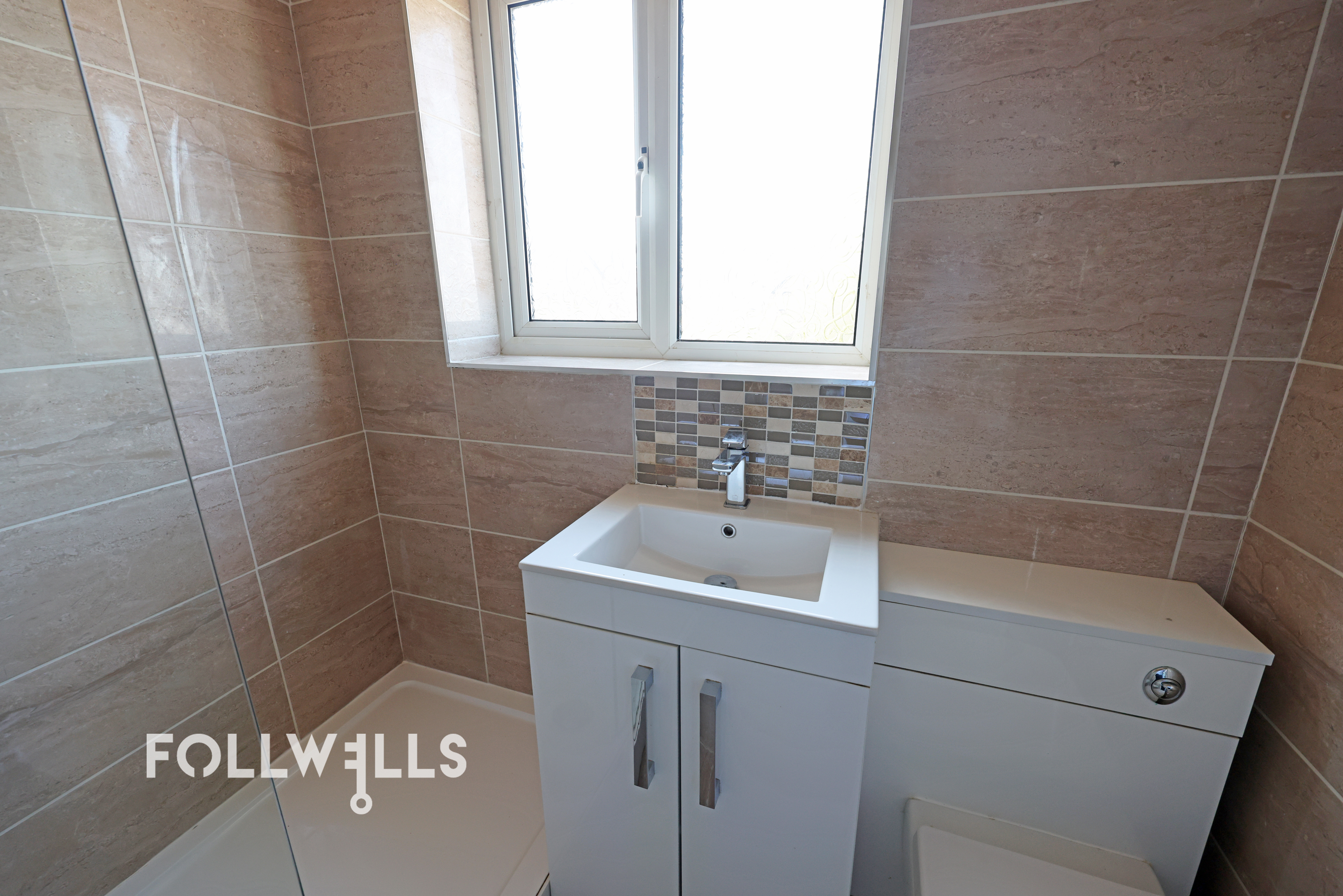First floor landing with side window, access to loft and airing cupboard housing cylinder. Access to two large double bedrooms, with the main bedroom having cupboard over stairwell. Re-fitted fully tiled shower room with walk in shower cubicle having electric shower, vanity wash basin and enclosed WC.