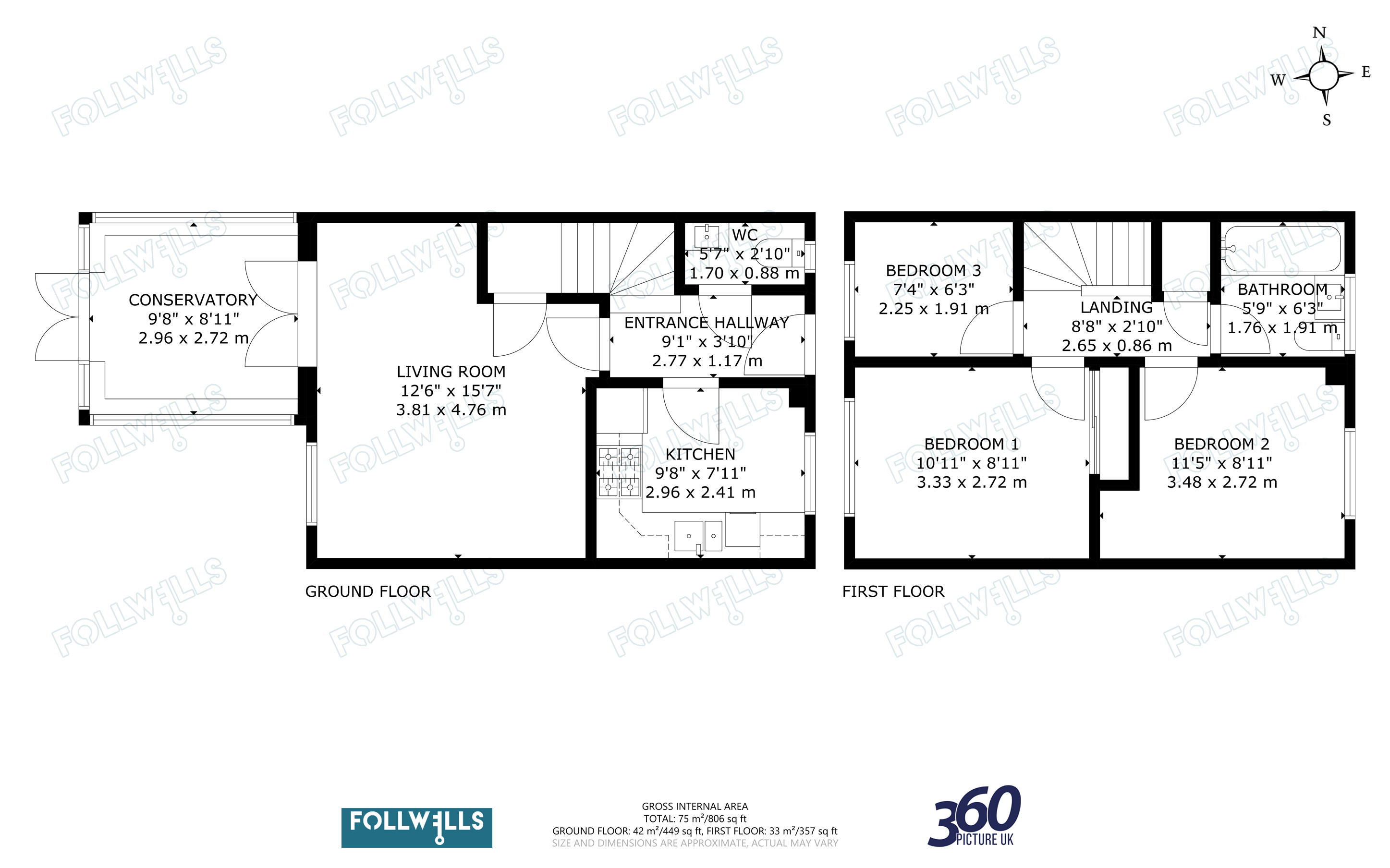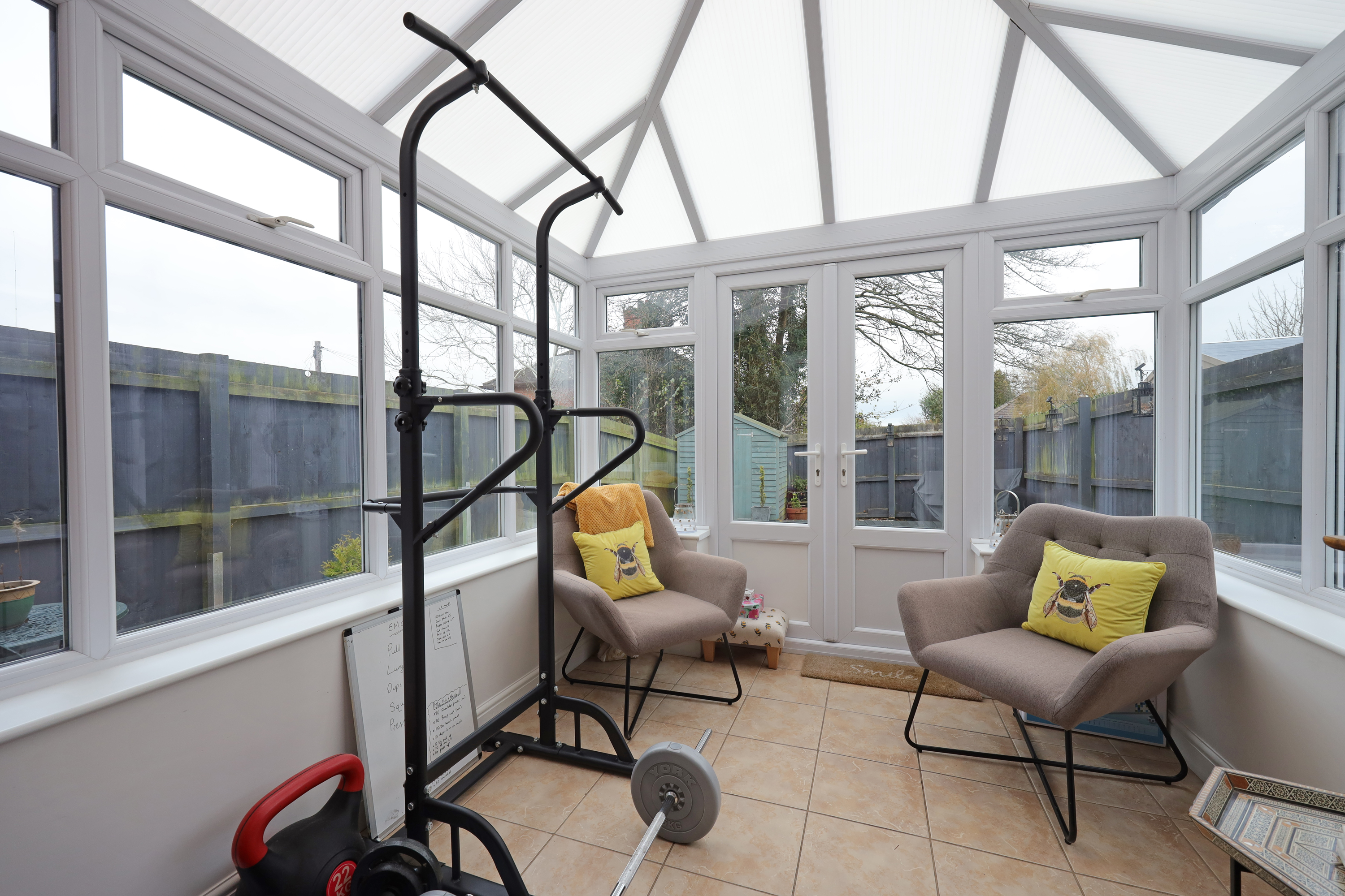 Entrance hallway, with turn staircase and cloaks WC. Front facing kitchen with boiler and fitted units with electric oven/gas hob and extractor. Space and plumbing for appliances. Spacious rear facing lounge/diner with under stairs storage and double patio doors opening to a UPVC conservatory having further double patio doors to the garden.