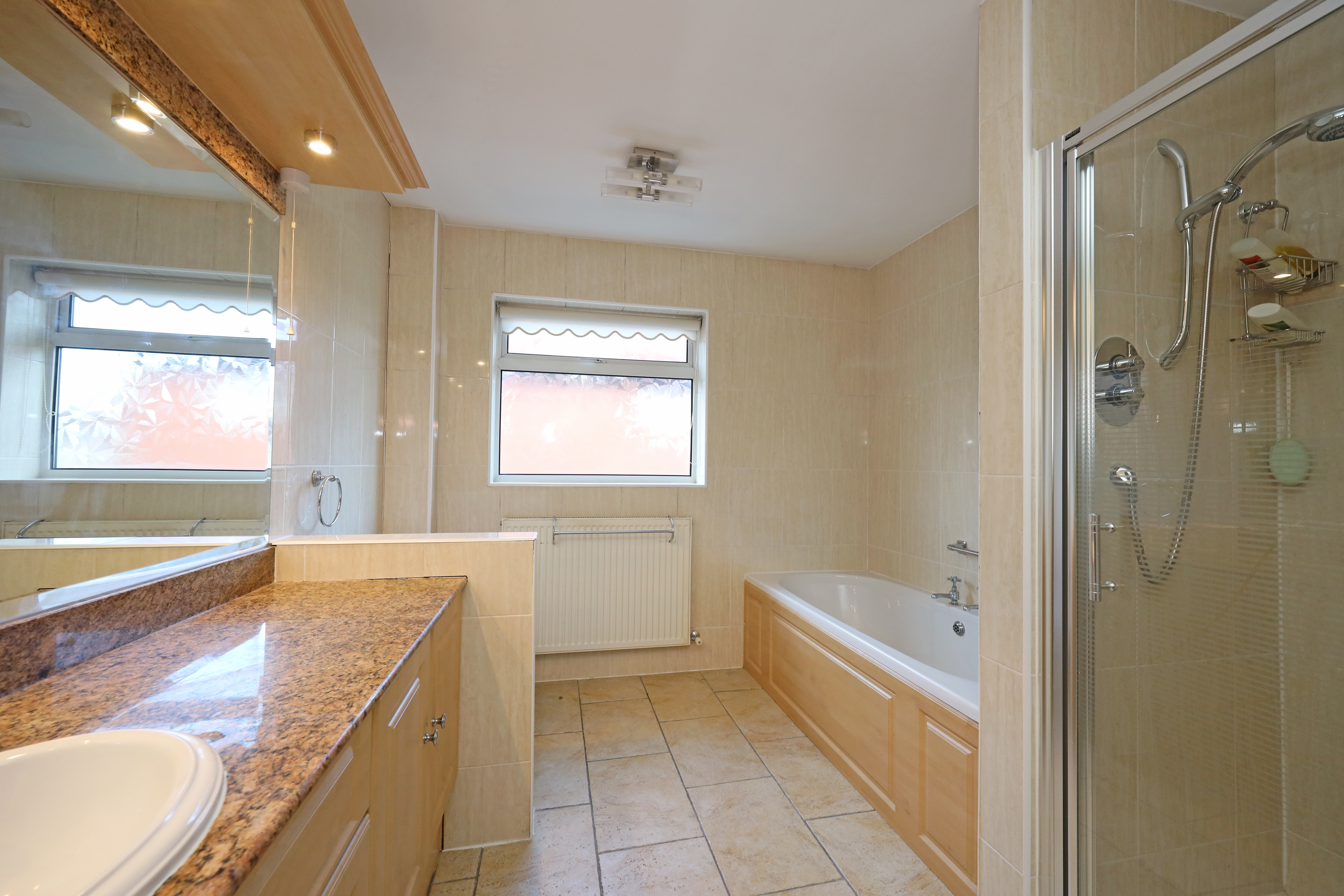 To the first floor are four double bedrooms, one with an en-suite bathroom with the remaining bedrooms being served by the family bathroom which is of an excellent size having bath and separate shower with vanity wash basin set in quartz tops.