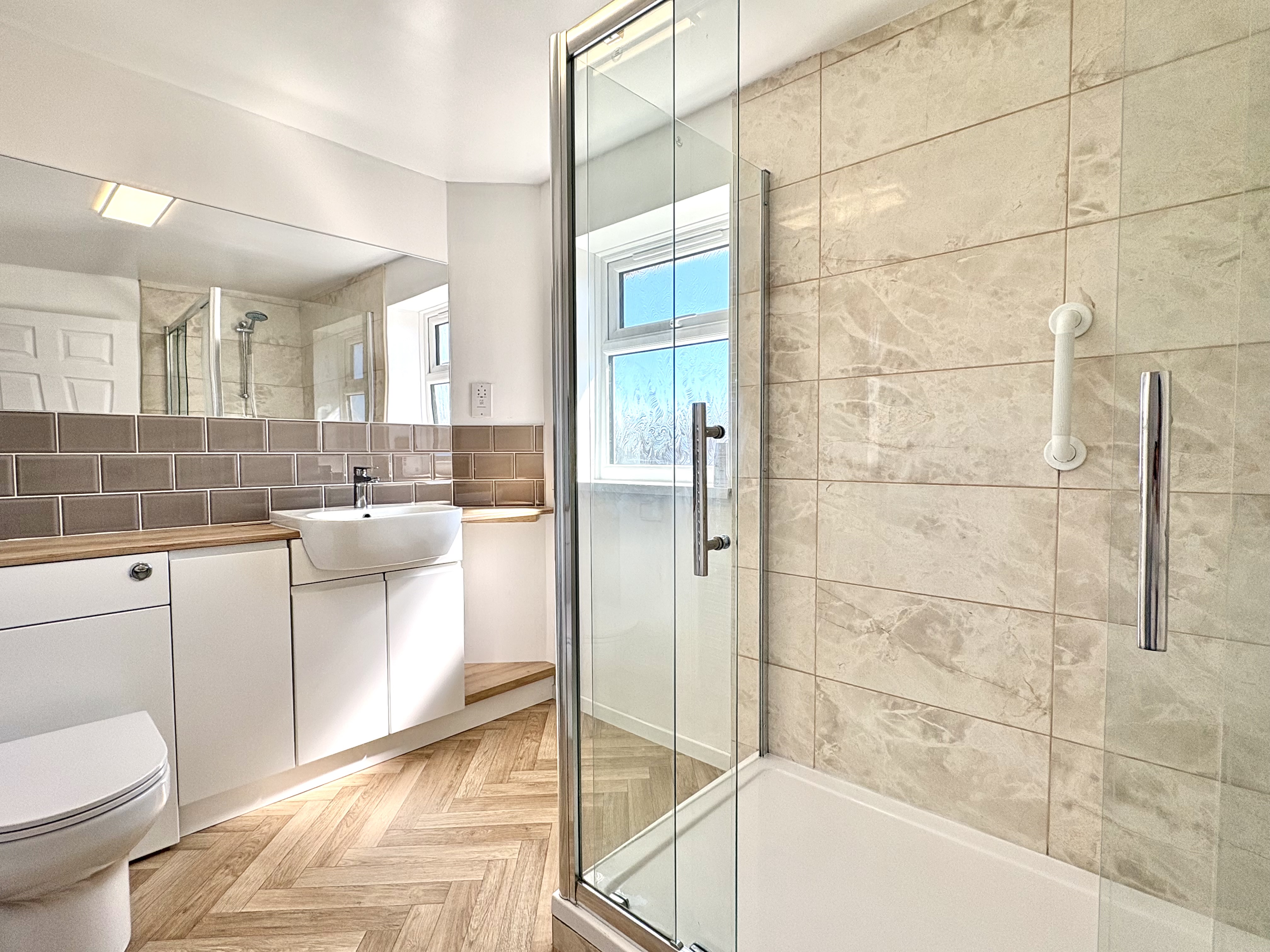 The first floor has a landing area opening to three well proportioned, spacious bedrooms. There is also a spacious shower room currently incorporating a large walk in enclosed shower cubicle.