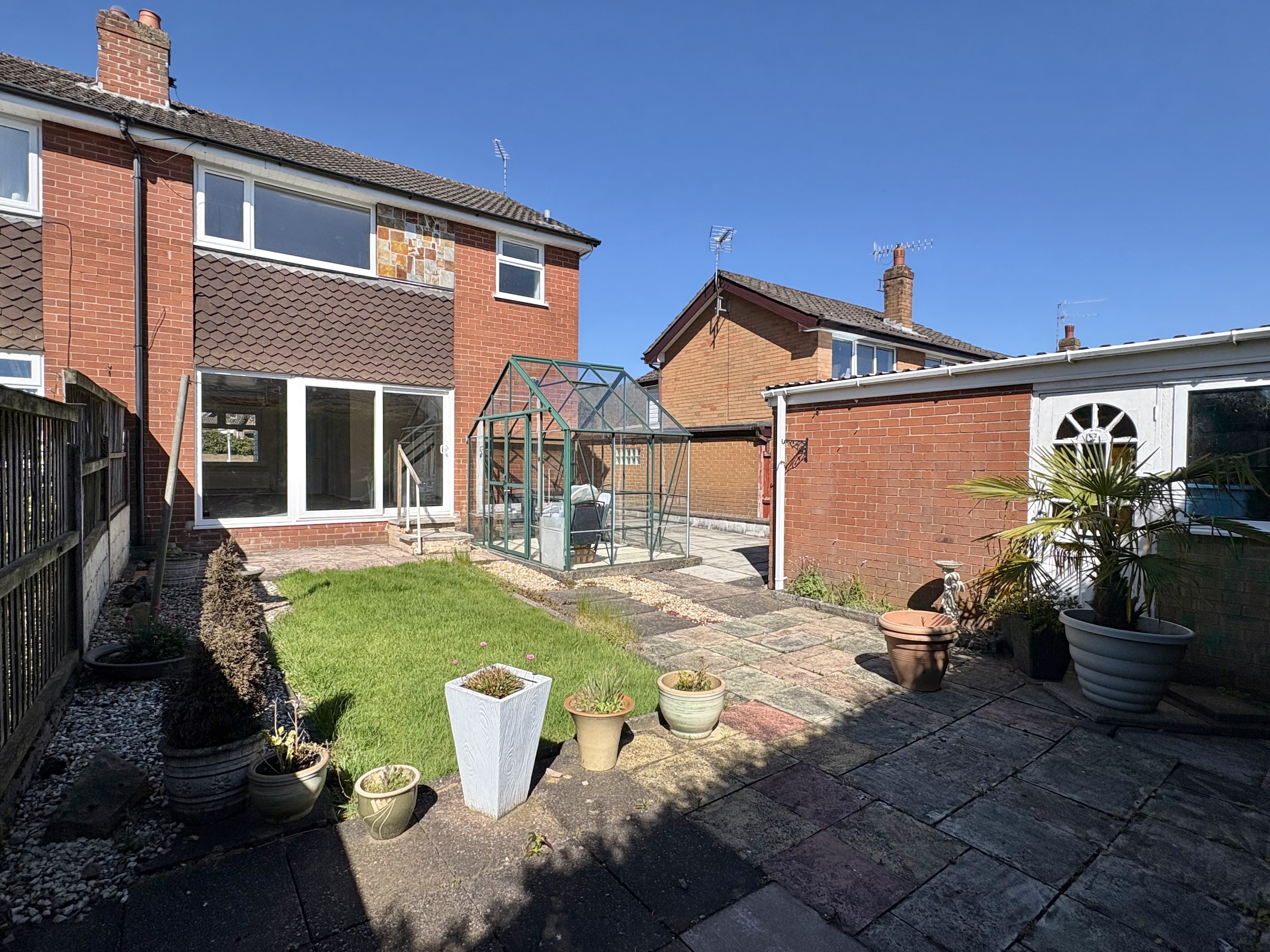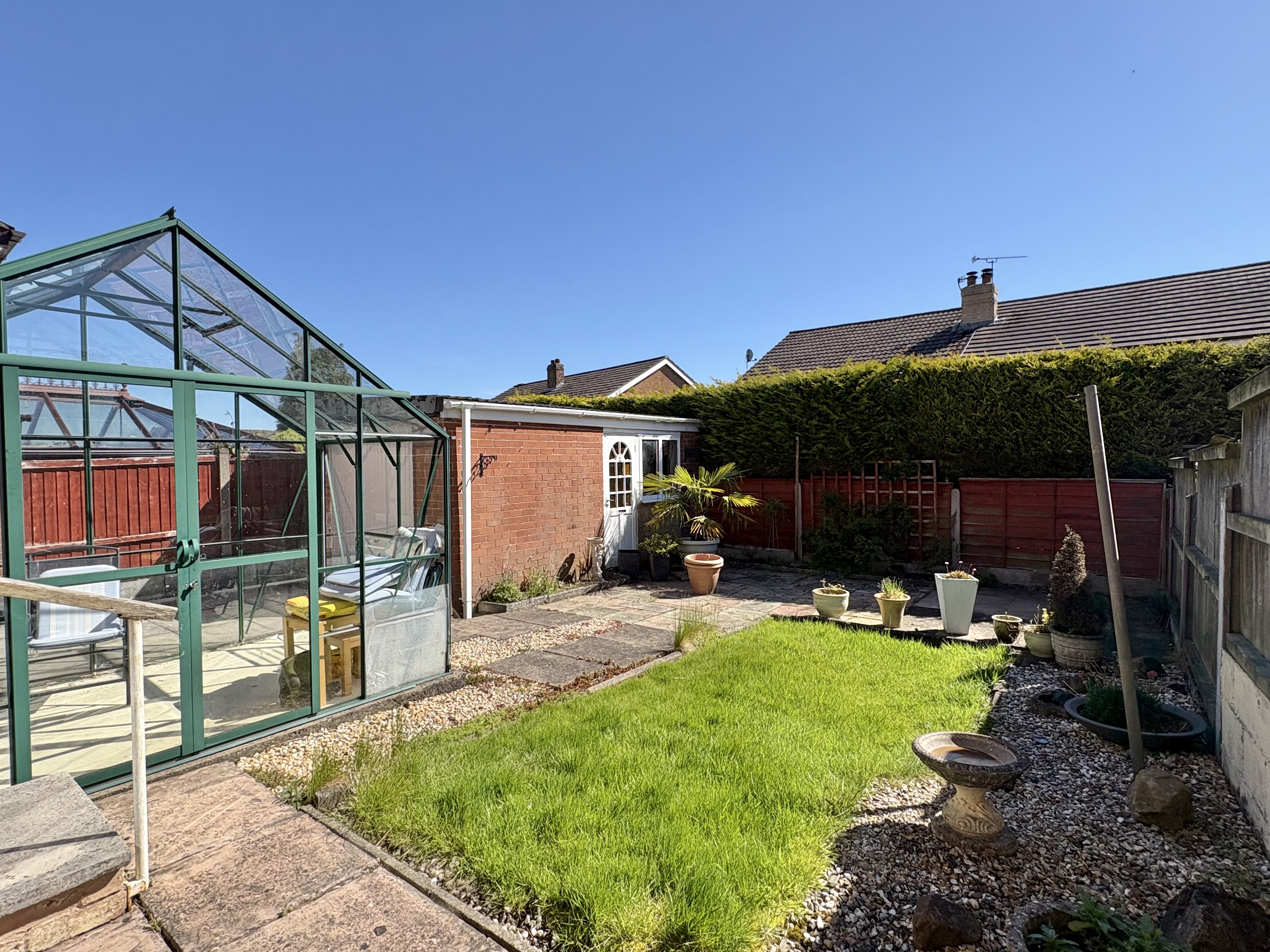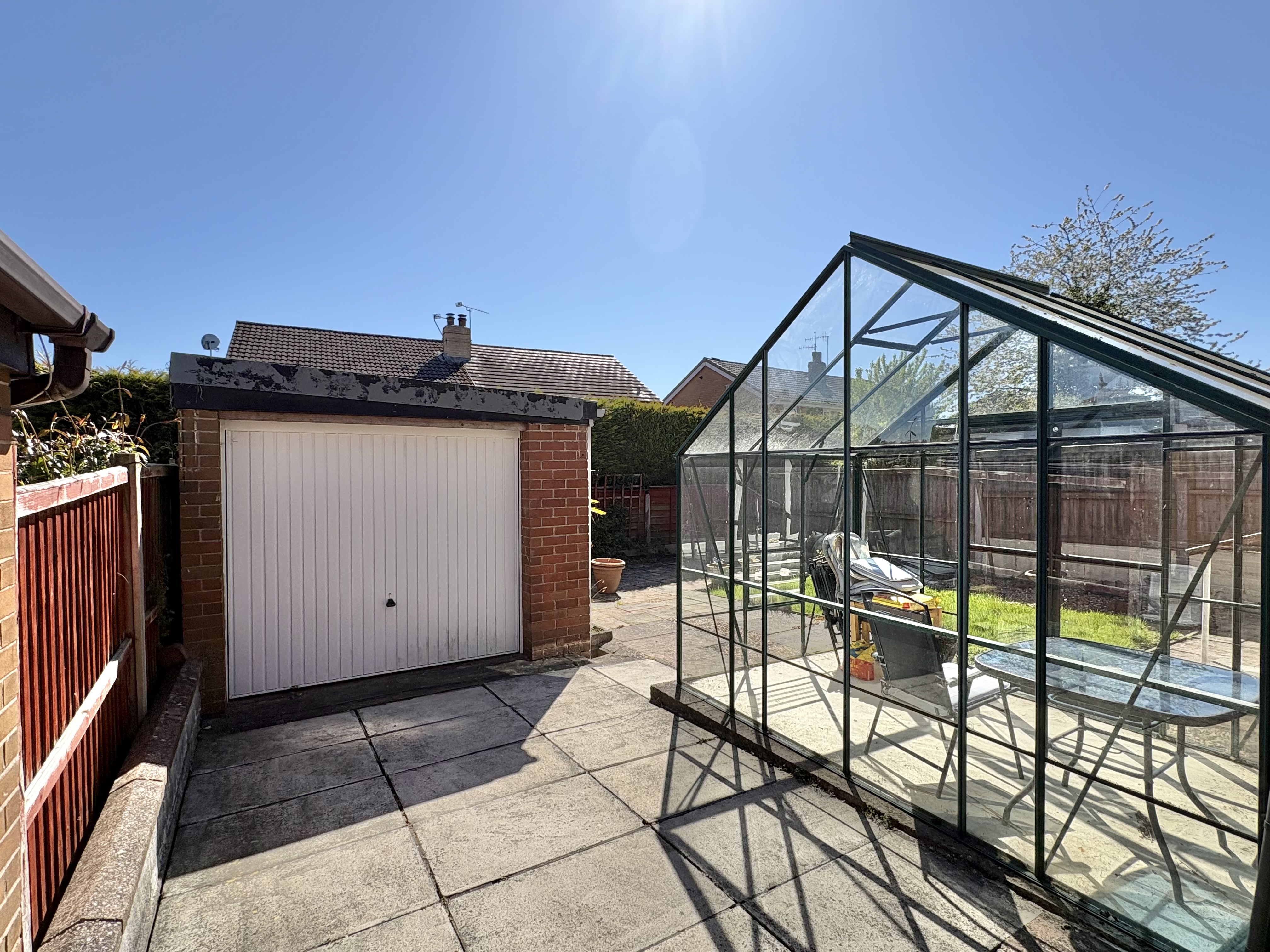 Externally, the property stands with a good depth frontage having tarmac driveway providing parking for several vehicles and a low maintenance garden area with stone chippings. There is wide paved access to the side of the property providing further parking and this leads to a detached brick garage which is fitted with an up and over main door, secondary side access door and light/power connection. Paving continues to a patio area within an enclosed rear garden with small lawn and a small timber framed summer house/store shed and a further large greenhouse.
