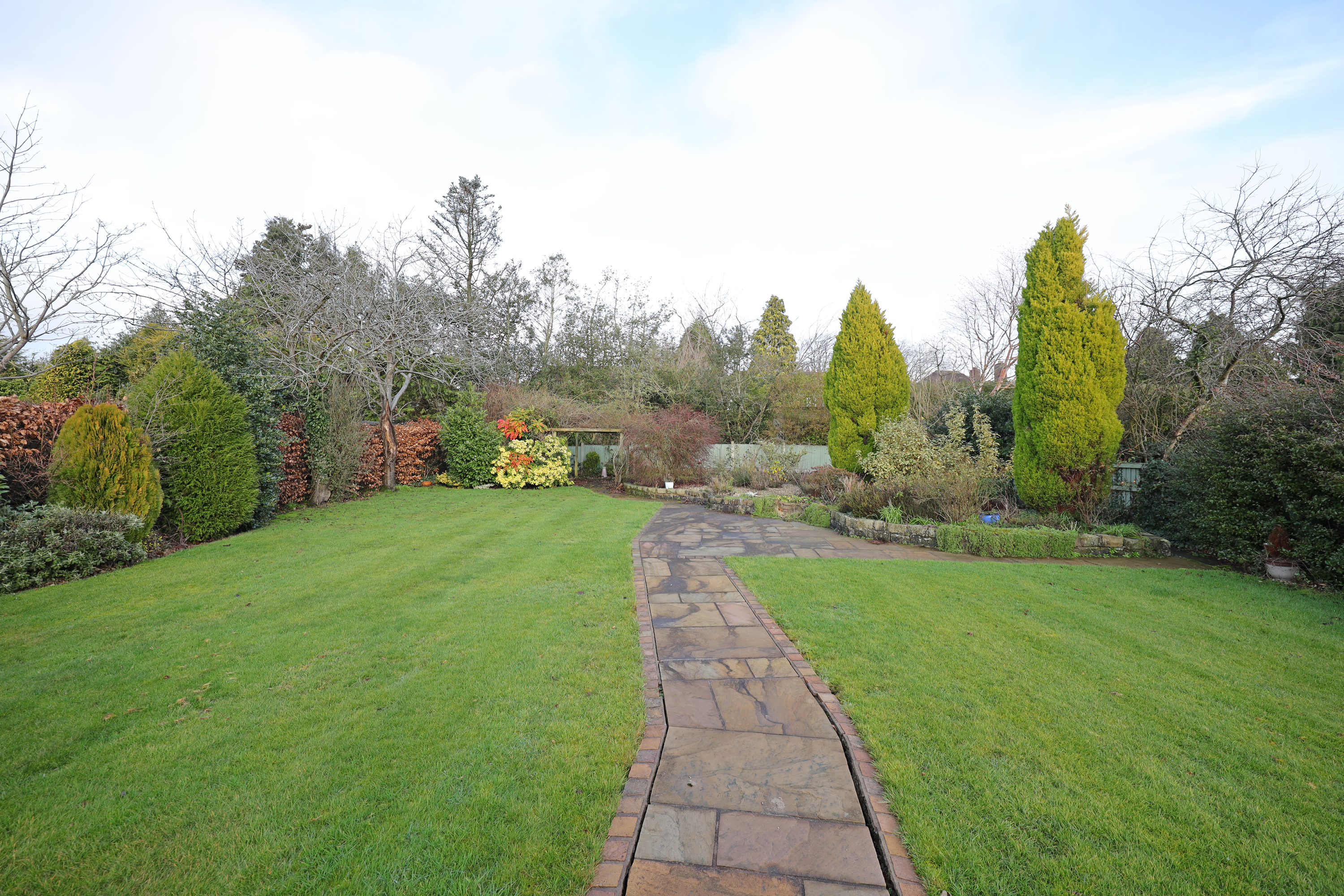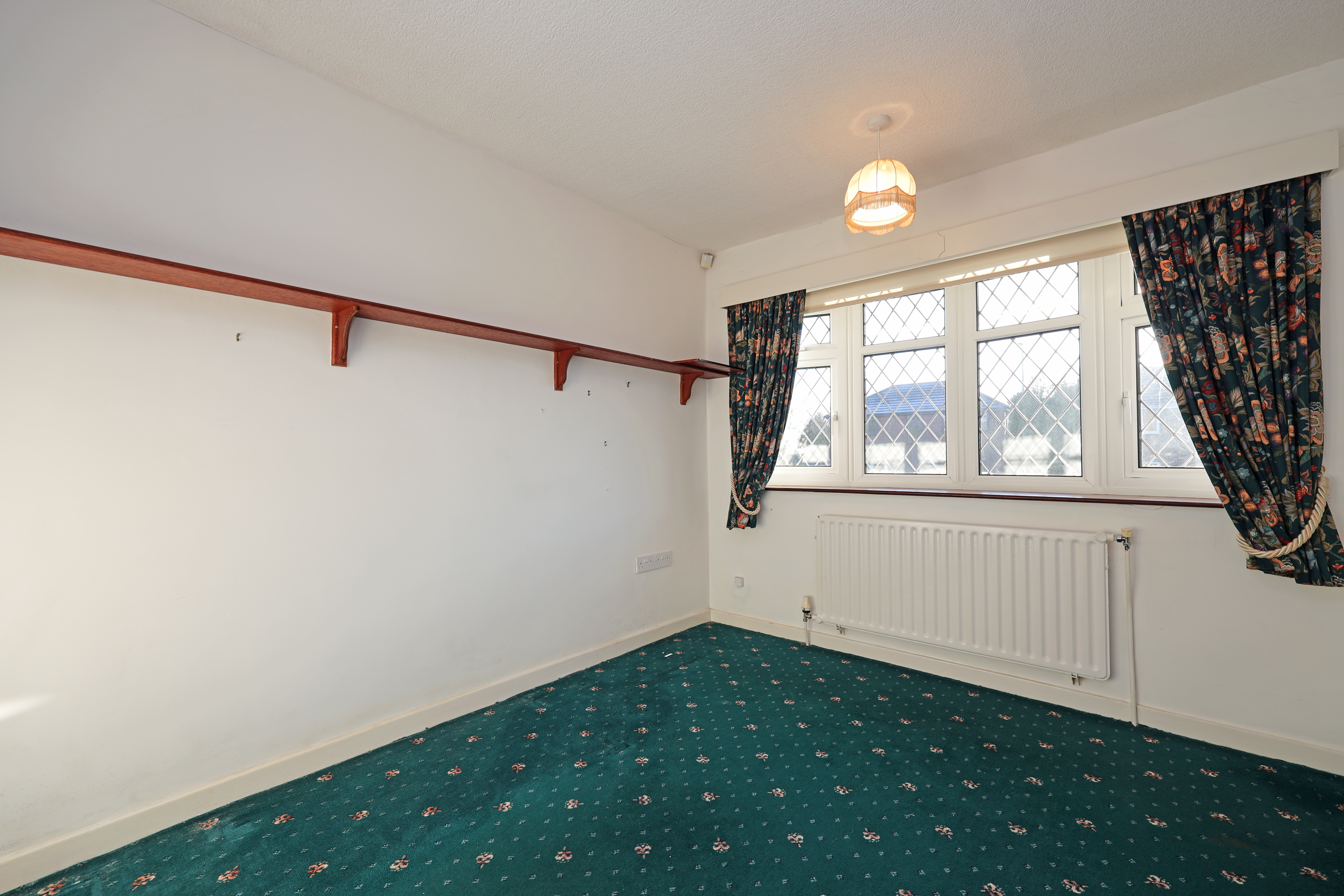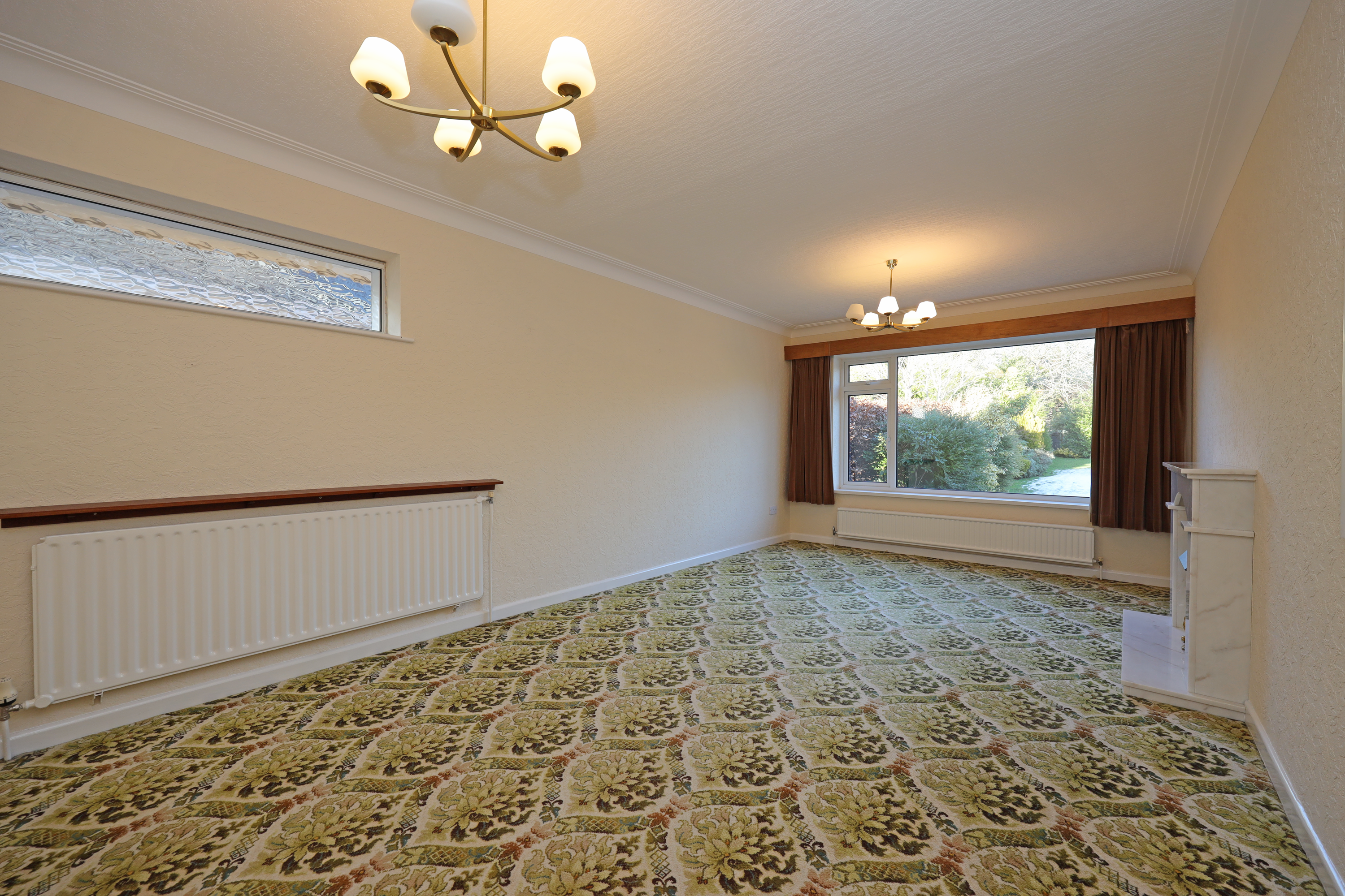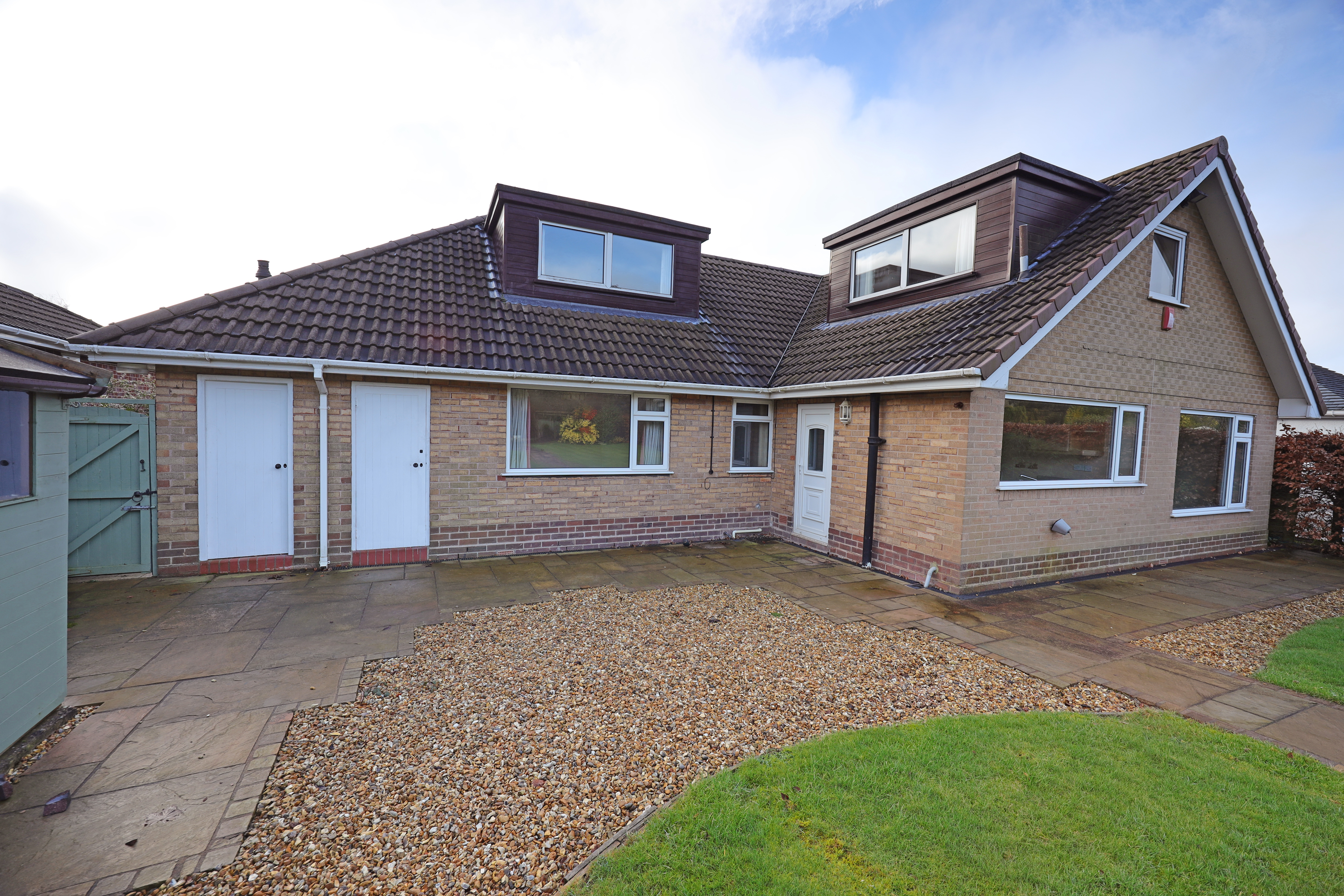 The bungalow stands on an equally substantial garden plot with low rise front boundary wall having pillar entrance with dual access drive and integral garage. The garage offers potential to create the possibility of further extended bedroom accommodation (subject to building regulation) and has power connection and remote front roller door. There is a small low maintenance garden area to the front and a side pathway leads to a large enclosed rear garden with established lawns having shrub/plant borders, garden shed, paved/gravel patios and pathway leading to large planted raised rockery area. Integrated within the main property is a store room and gardeners W.C which houses a replacement central heating boiler.