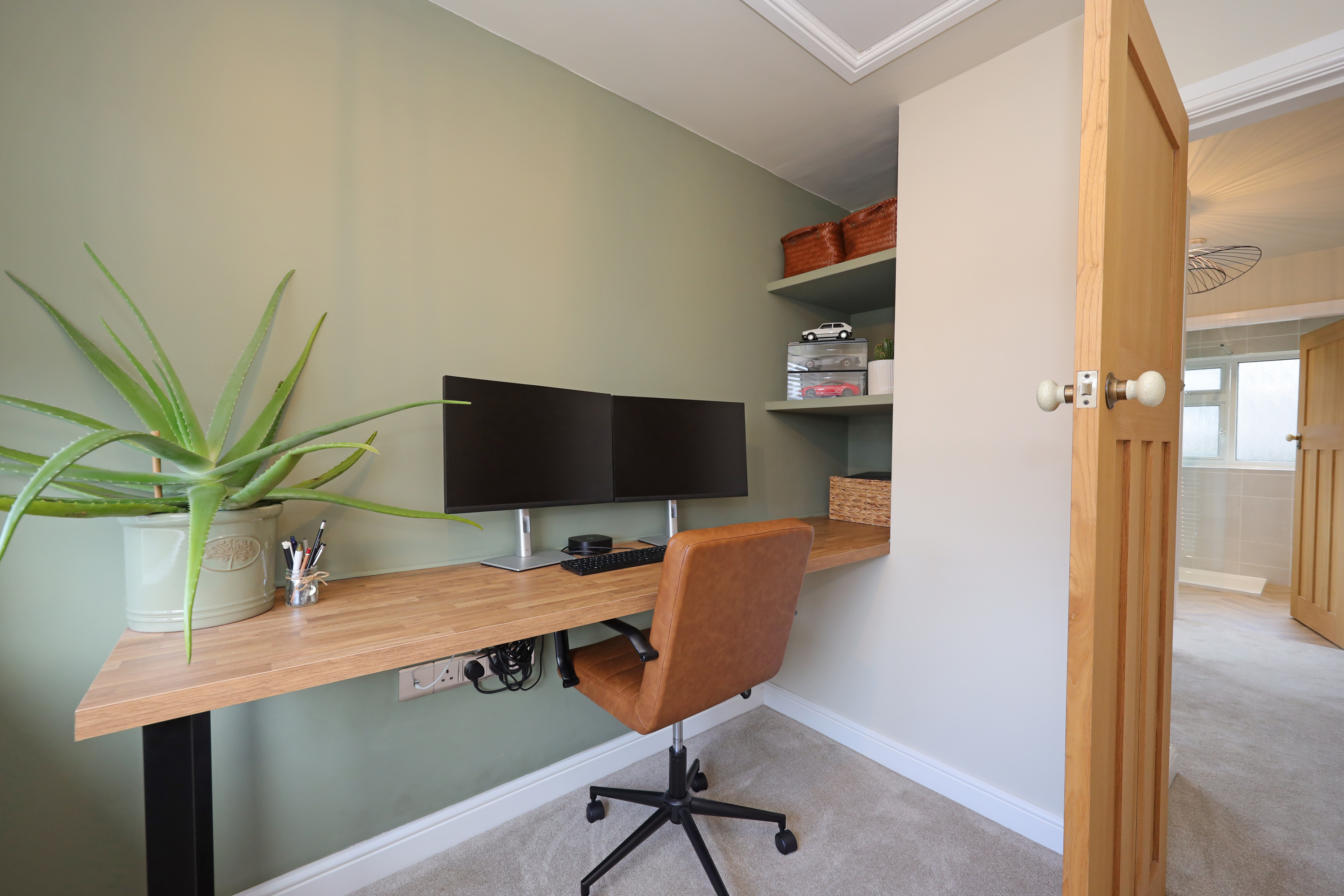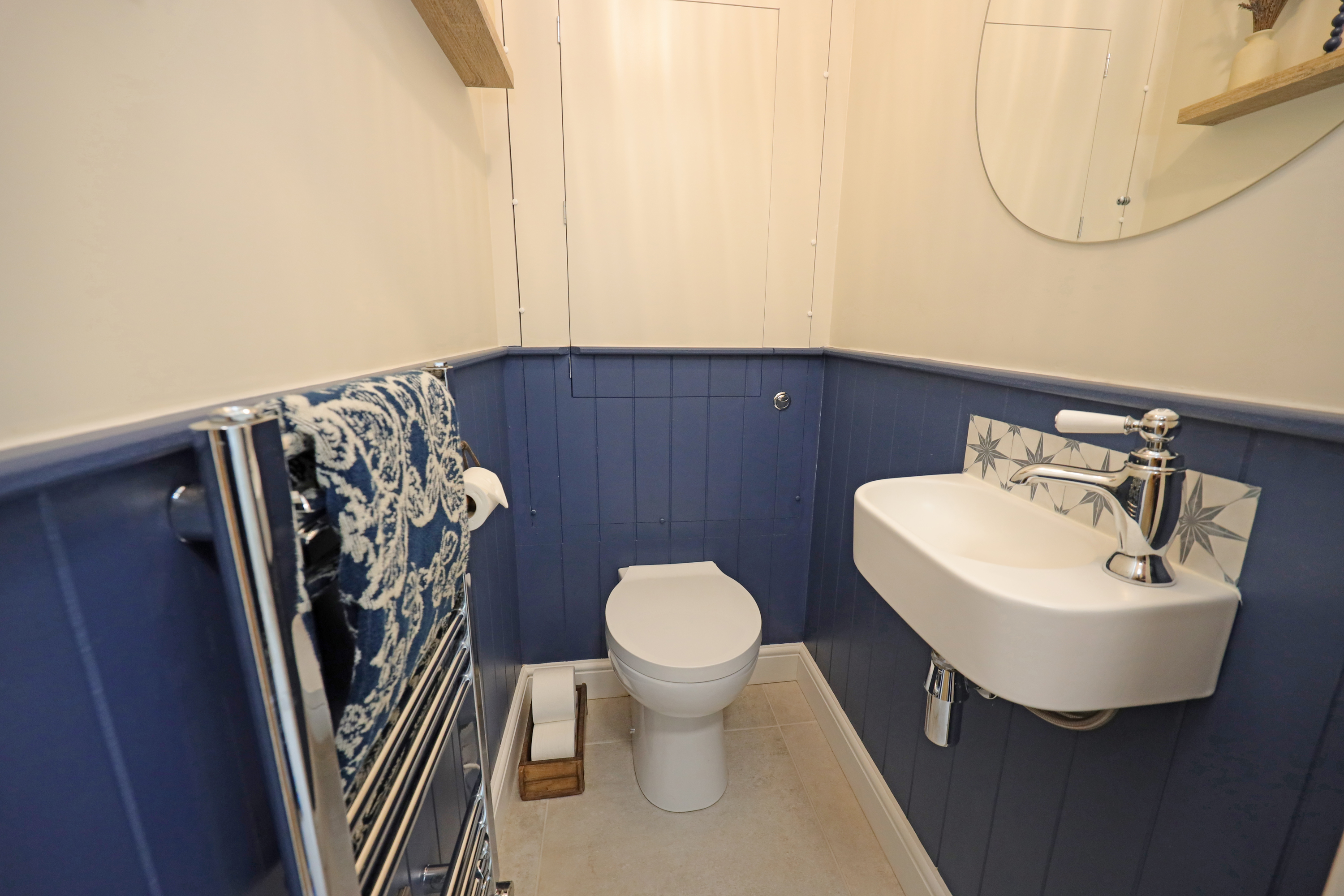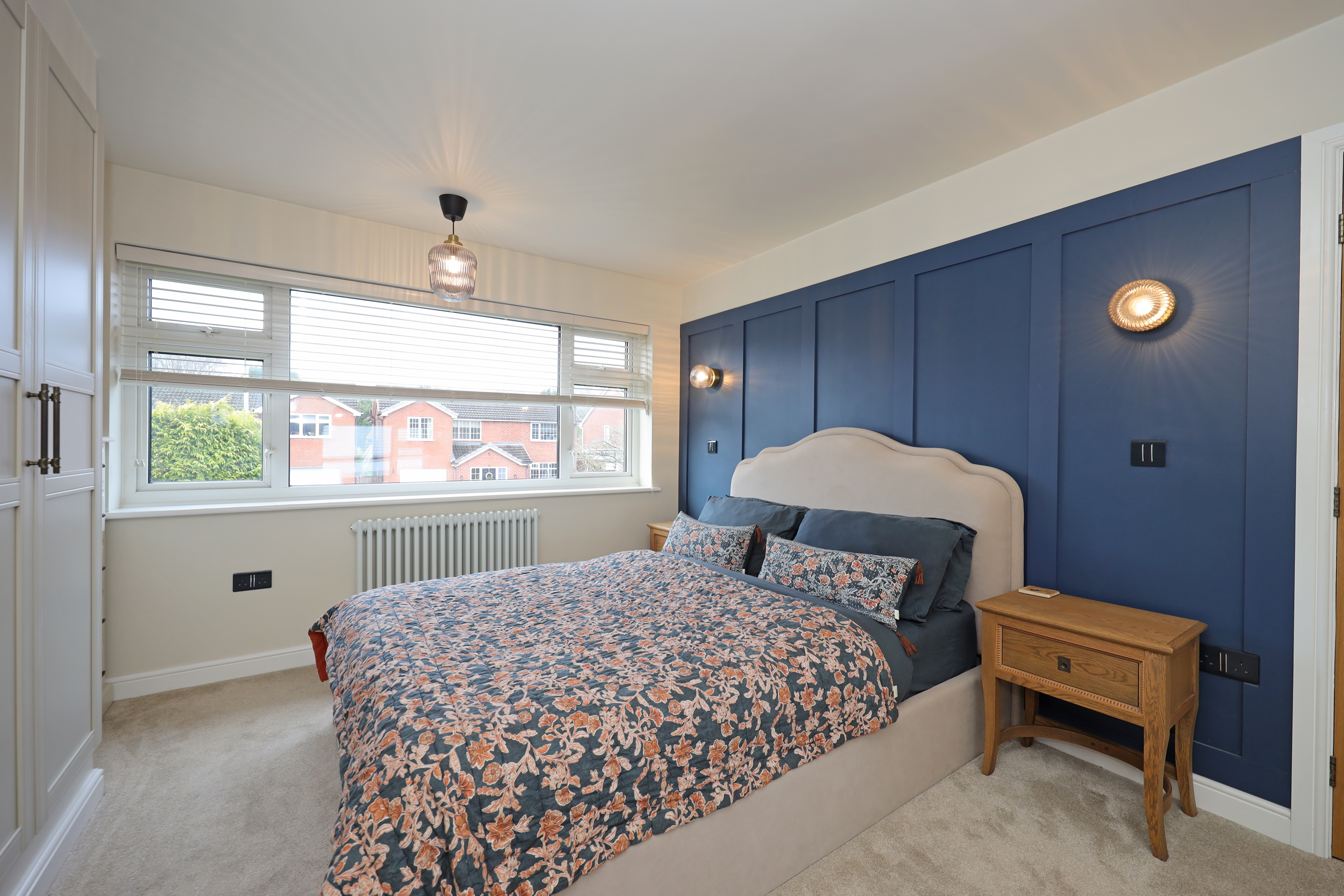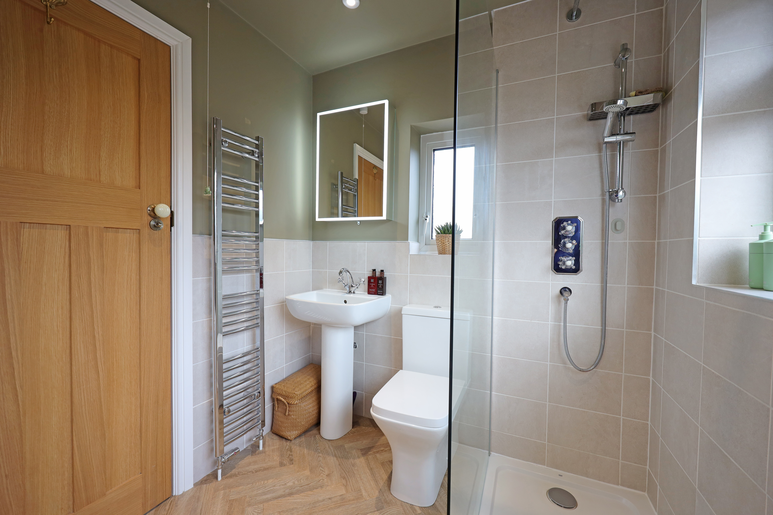 The meticulous finish to the property continues on the first floor with oak internal doors to rooms from the landing which has a large window to the side aspect flooding the area with natural light. The master bedroom looks out onto the front with further feature radiator, fitted wardrobes to one wall and decorative wall panelling. The second guest/double bedroom also features built in wardrobes with decorative wall panelling and enjoys views over the rear garden. A good size third bedroom, currently being used as a study also overlooks the front and has a pull down ladder providing access to a large useful floor boarded loft. A stylish appointed bathroom features a bath with concealed mixer tap and shower spray, walk in separate shower cubicle with main shower and separate spray, wash basin and WC. The bathroom is finished with modern wall tiling and towel radiator.