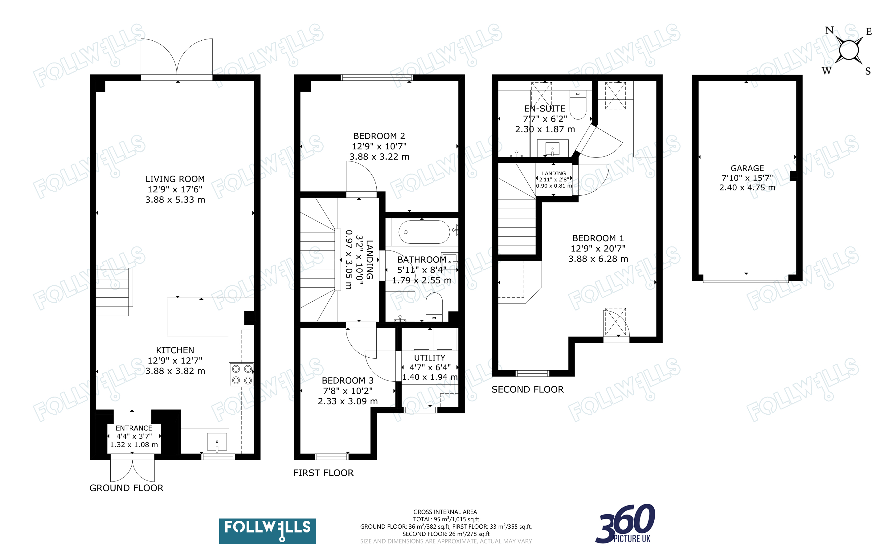 There is a blocked paved parking area directly in front of the property with further parking in front of an allocated garage. The garage is centre in an adjacent block of three and is fitted with up and over door and has a pitched roof void. To the rear of the property is a low maintenance tiered patio garden with timber decking and rear pedestrian access.