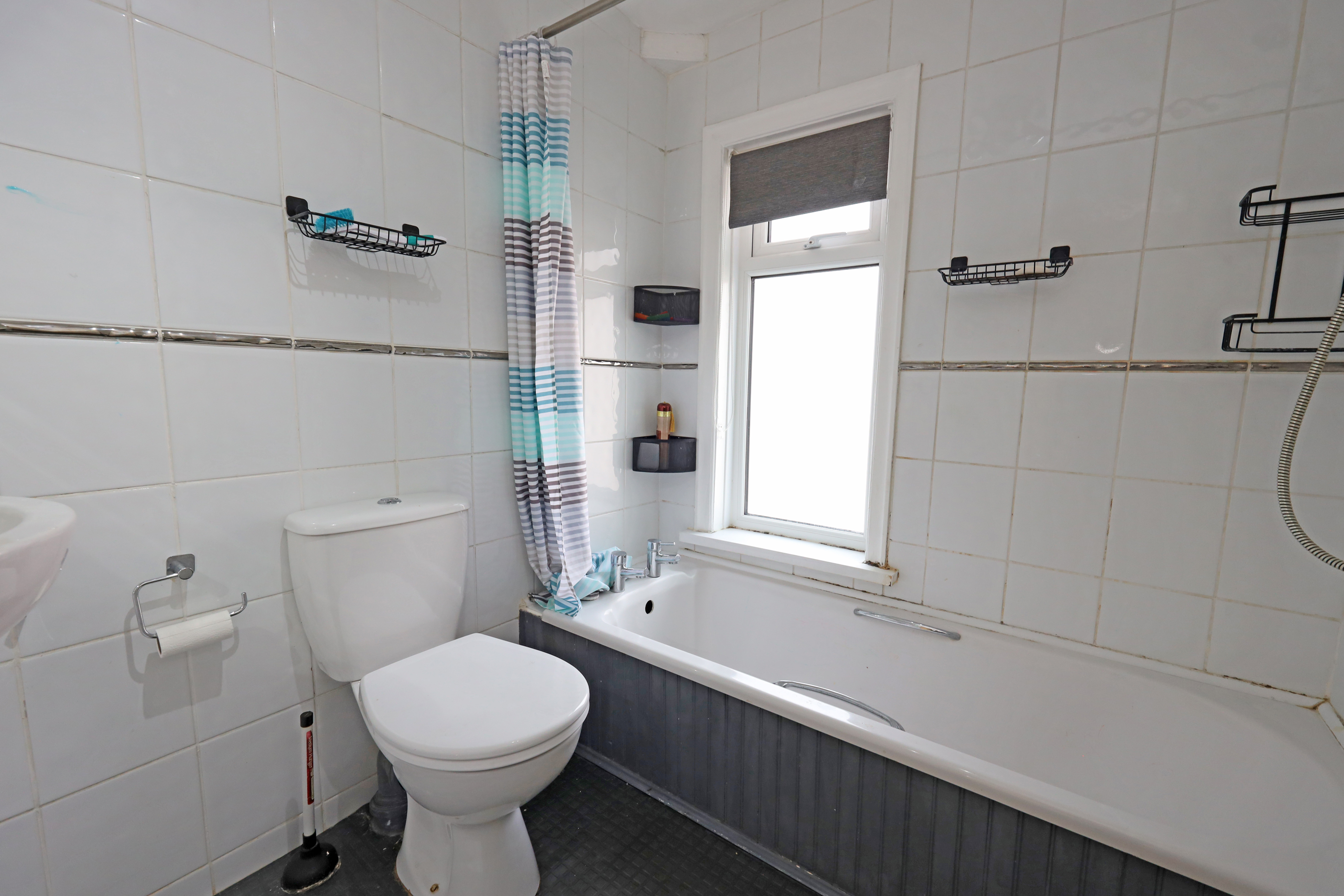 First floor landing with window and loft access. Three bedrooms comprising large bay fronted main bedroom with shelving, rear facing second bedroom with fitted wardrobe/cupboard units and rear facing third bedroom. Step from landing to a contemporary fitted three piece bathroom.