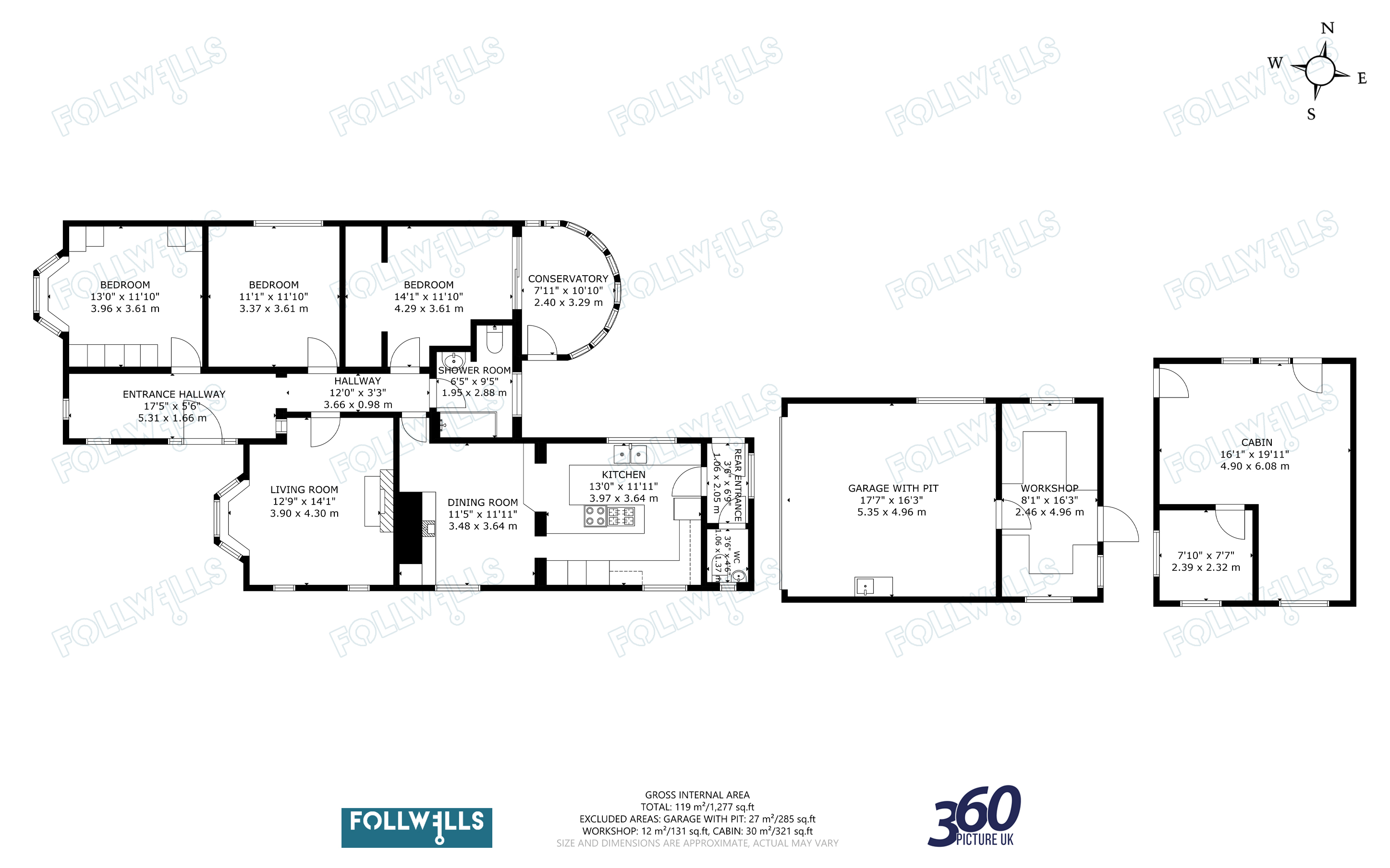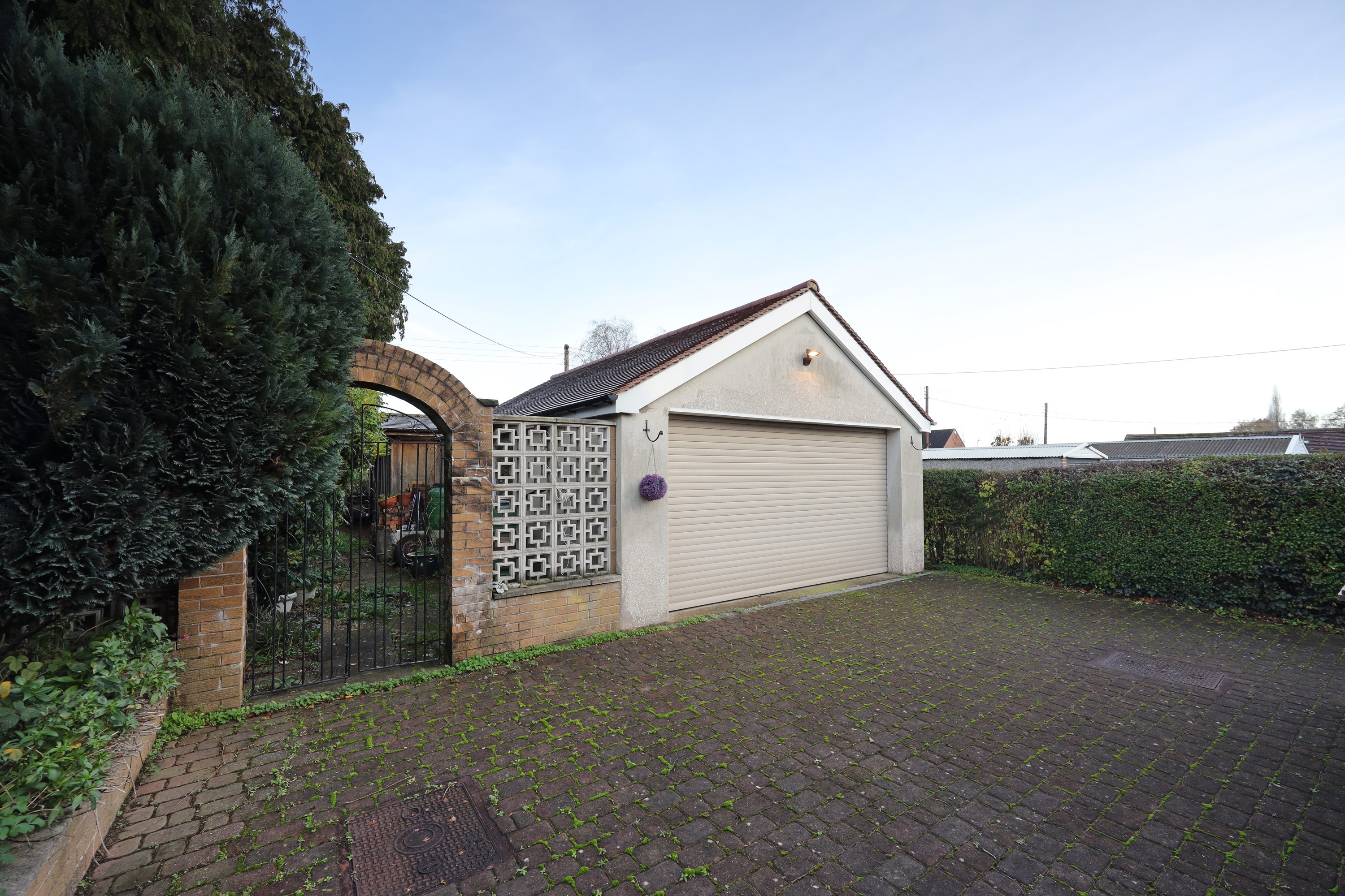 Externally the property is accessed off a side road with no through access onto a block paved driveway providing ample off-road parking and turning space. Useful outbuildings include a detached brick and tile garage with workshop to the rear and a separate, substantial cedar built cabin with power/lighting; ideal for use as a home office or gym/hobby room. The gardens are of a good size although currently somewhat overgrown.