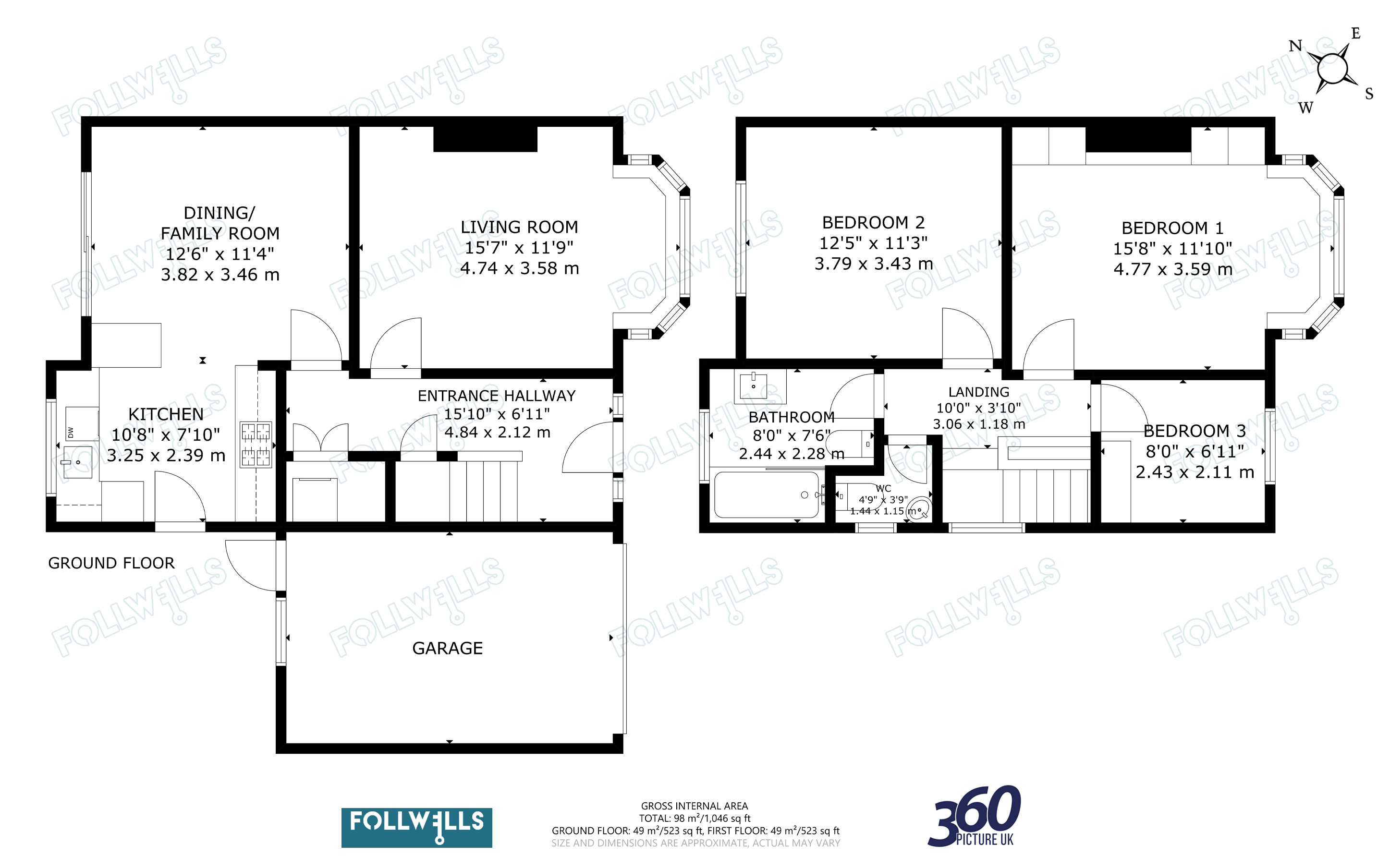 On the first floor a central landing gives access to three well proportioned bedrooms and the family bathroom. Bedroom one is a large double with bay window to the front elevation and fitted wardrobes. Bedroom two is also a spacious double room with bedroom three being a single and looking out to the front elevation. The bathroom is fitted with a suite providing shower over bath with glass screen, vanity wash basin and WC. There is also a useful second WC located next to the bathroom.