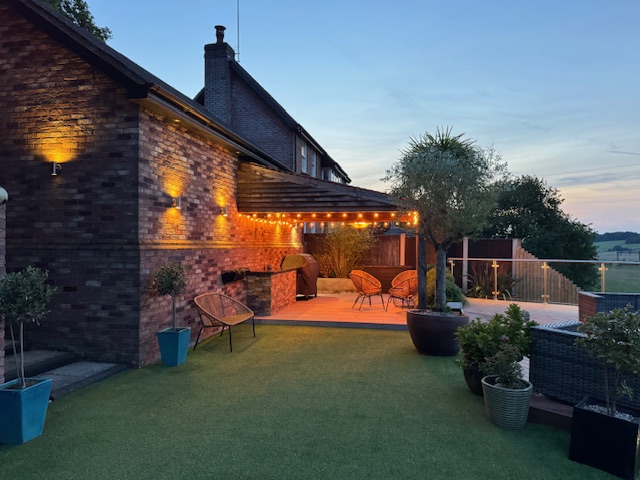 Access can be obtained to either side of the property leading to a further impressive modern landscape terraced garden area. Ideally suited for entertaining having low maintenance in mind. Fitted with composite decking, artificial lawn with glass balustrade railings and various night time illumination. The whole garden enjoys superb panoramic views across the adjacent rural landscape of Whitmore Valley. There is a large timber covered entertaining area with tiled floor and barbecue preparation table. Additionally, there is a freestanding all weather timber framed covered gazebo, which is available under separate negotiation.  CCTV and burglar alarm system installed.