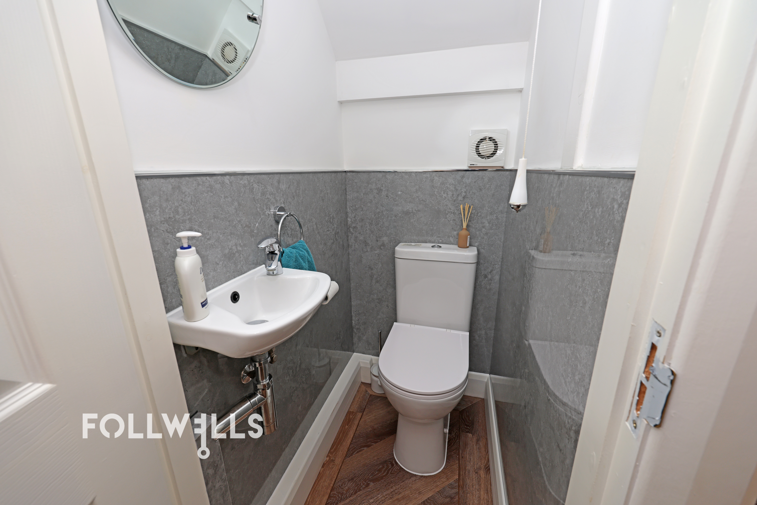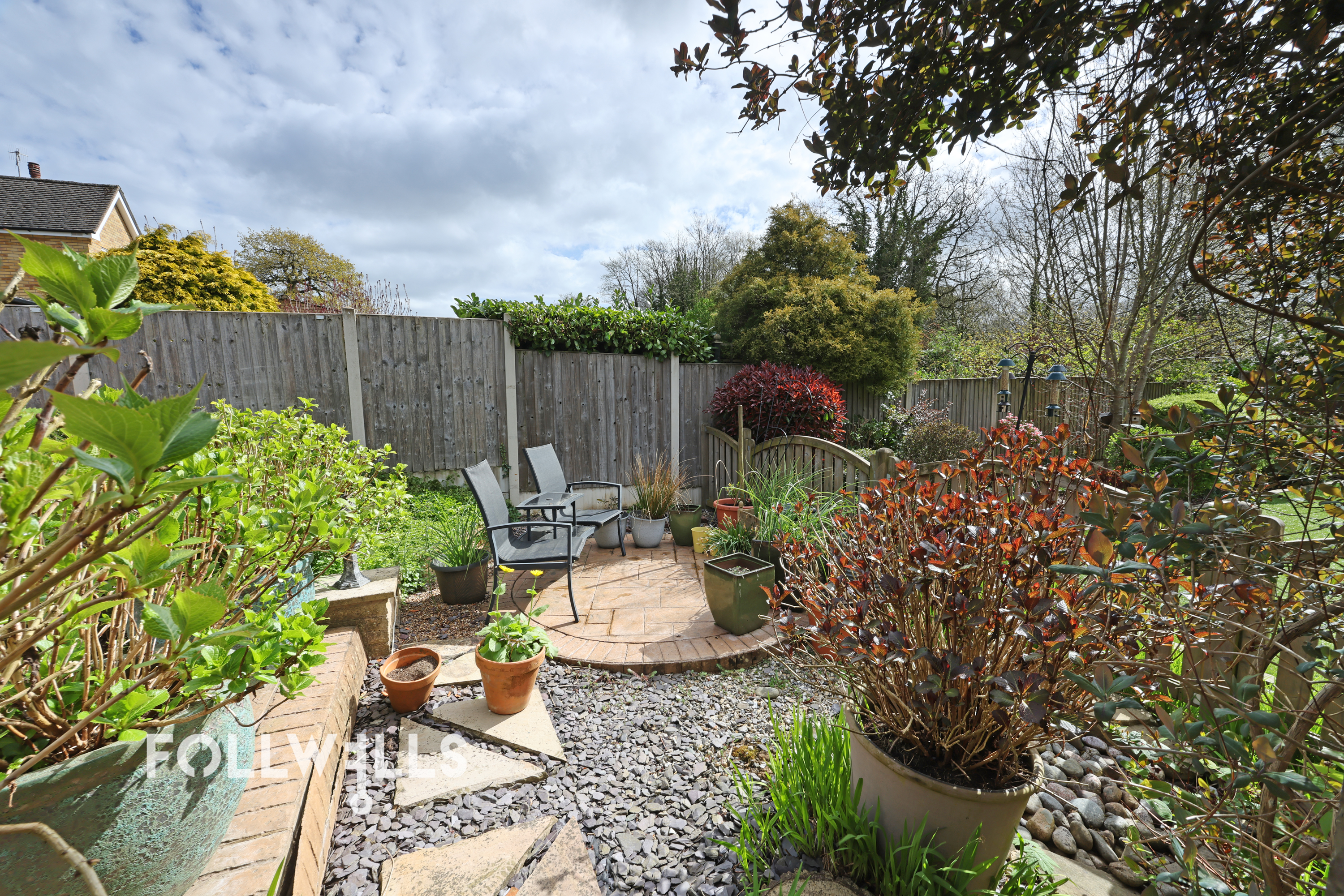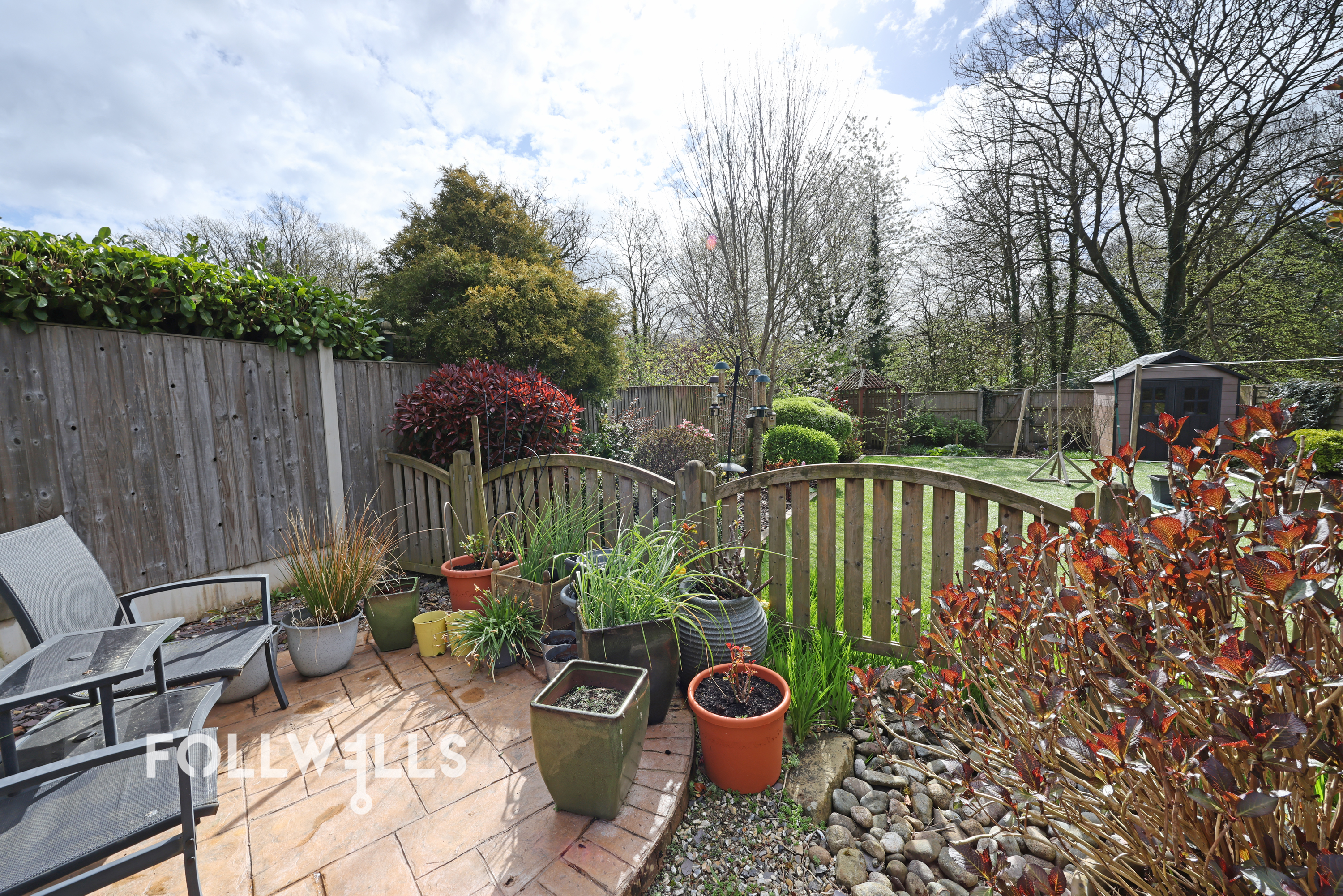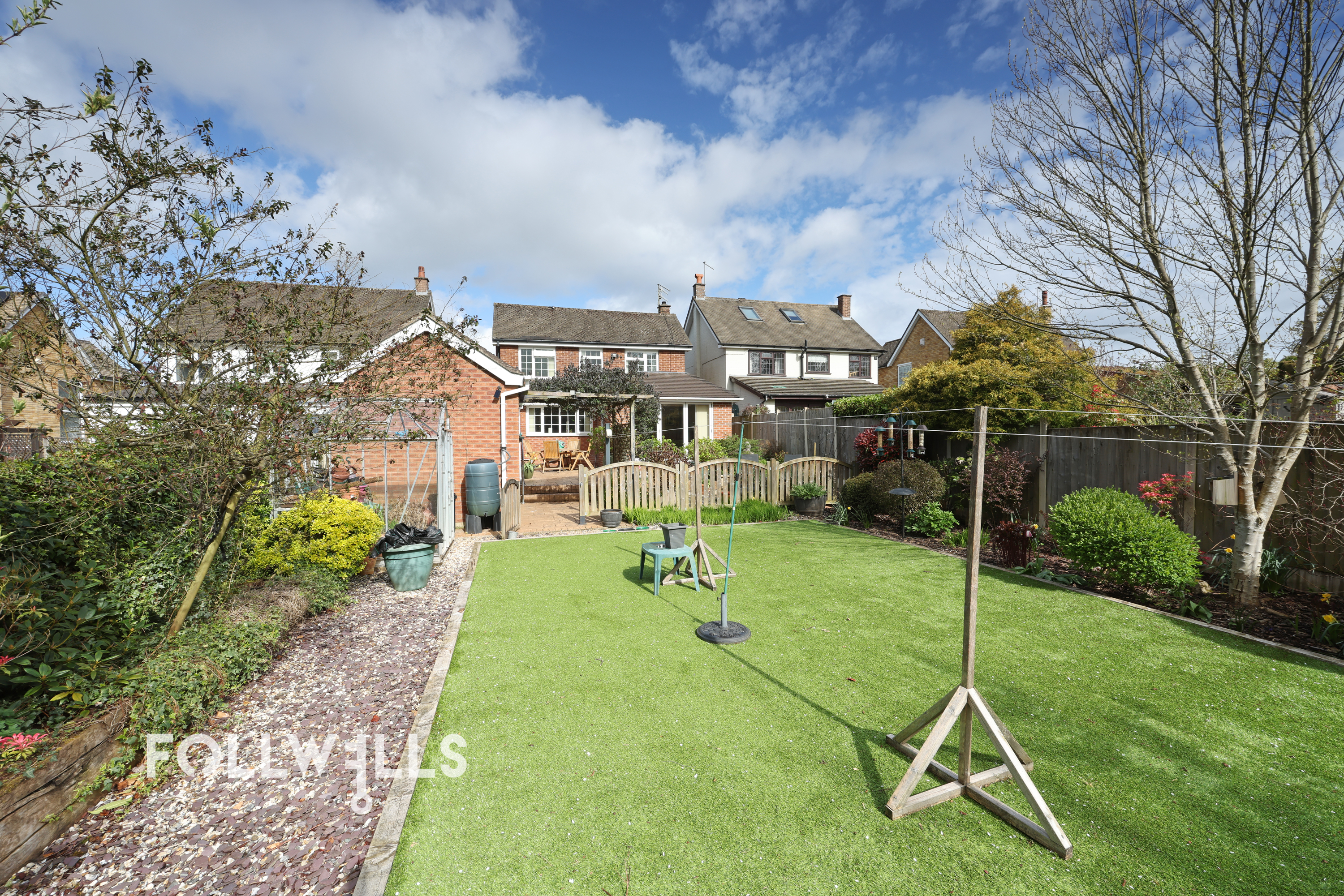 The rear garden provides a large moulded concrete sitting area adjacent to the house with steps down under a timber pergola to a flat area of artificial lawn surrounded by well stocked shrub beds, garden shed and greenhouse.